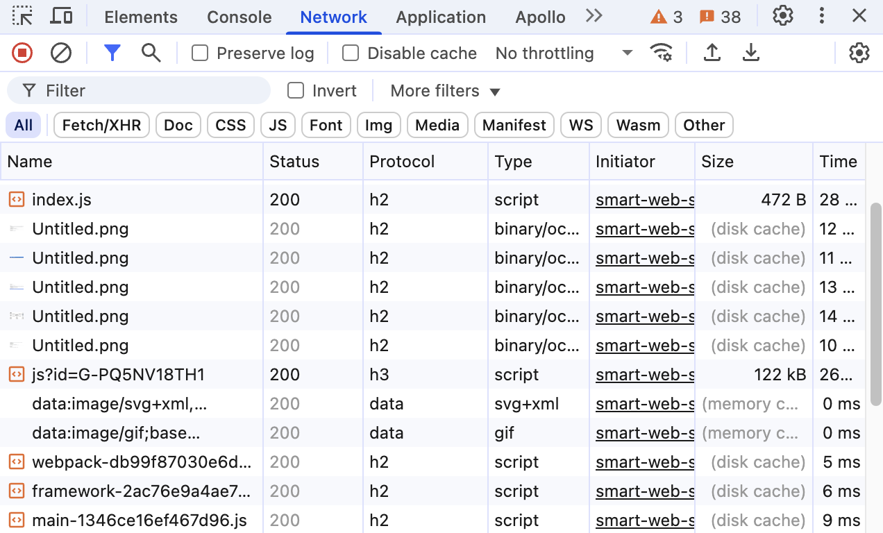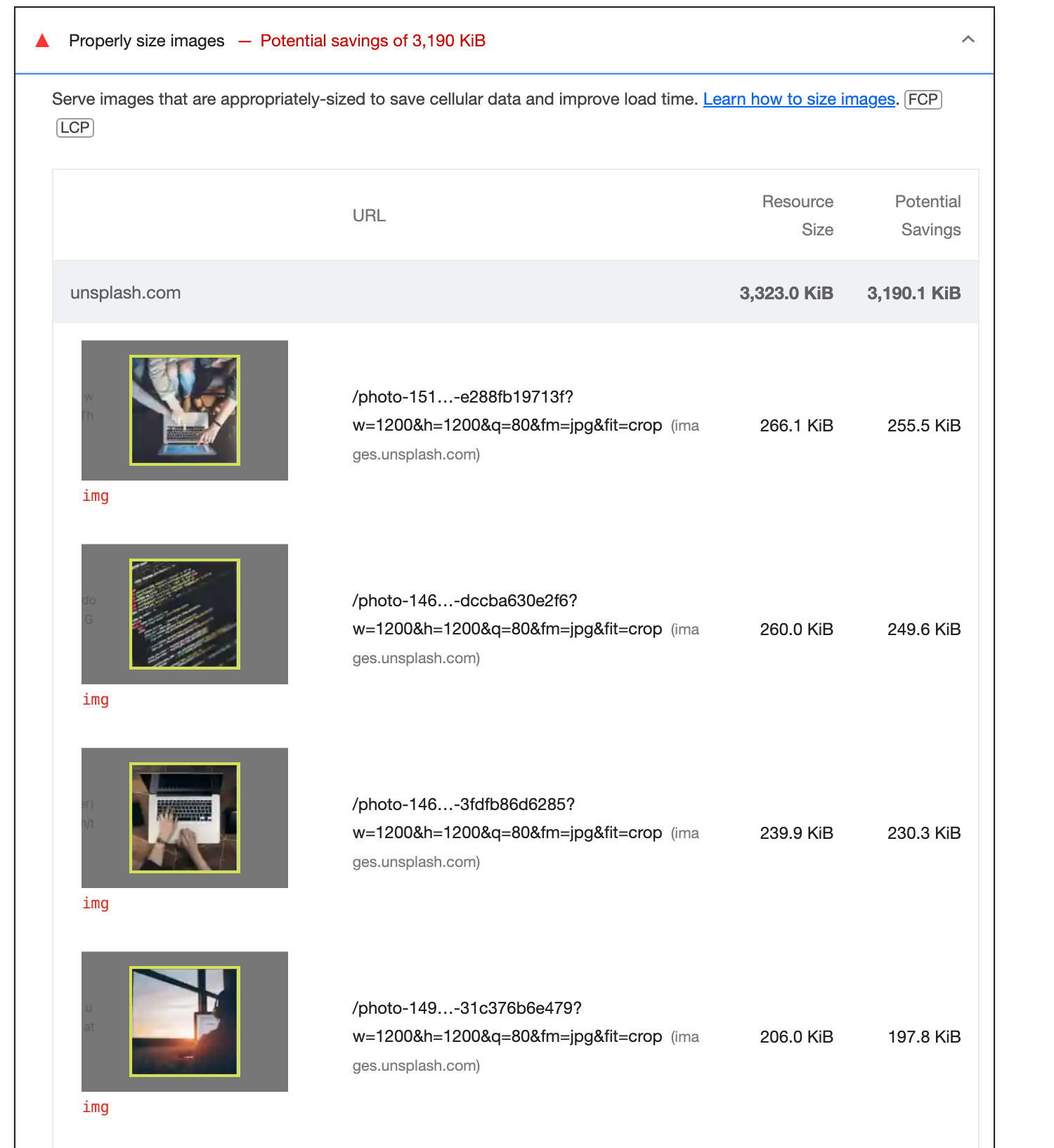 Diagnotics 항목을 보면 다음과 같은 비효율적인 이미지가 로드되는 상황이 나타난다.