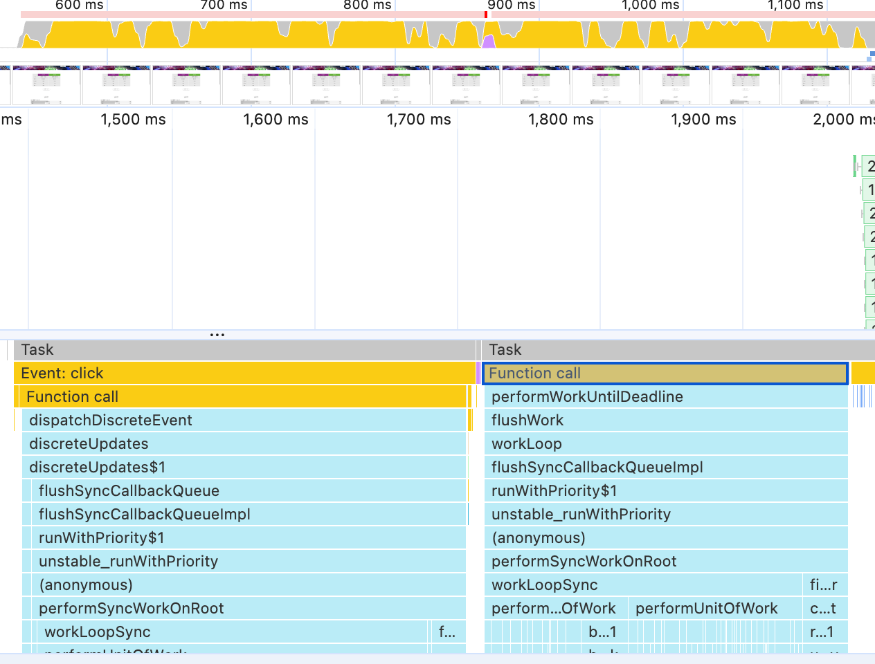 • 빨간색: 병목지점. 특정 작업이 메인 스레드를 오랫동안 잡고 있을때