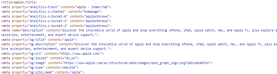apple.com은 SEO를 위해 다음과 같이 meta tag를 설정해 놓았다